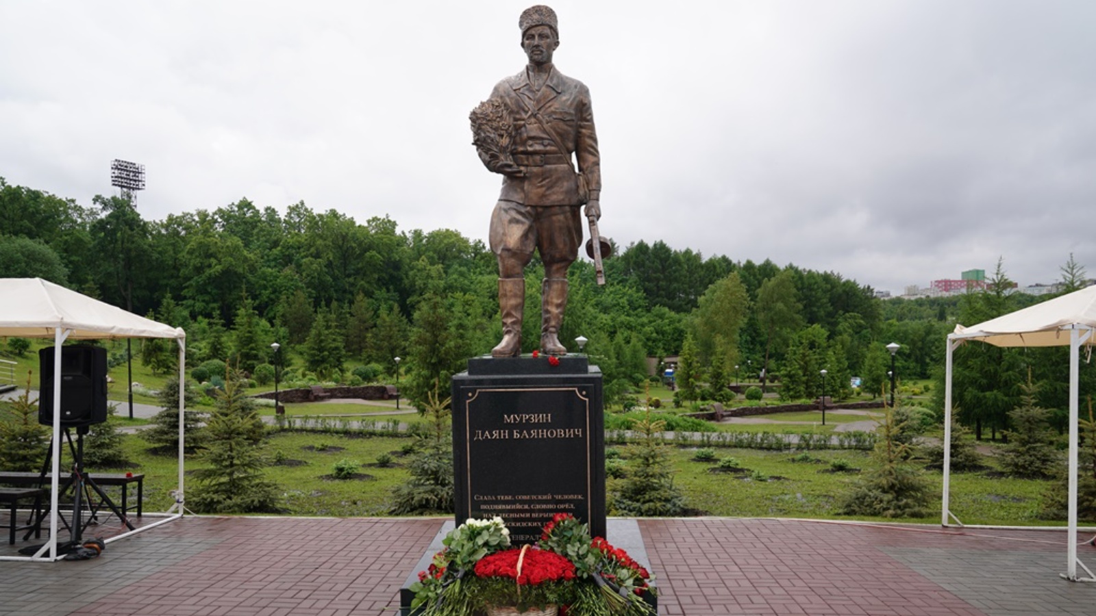 7 июня, в сквере рядом с Уфимским государственным театром «Нур» открылся памятник легендарному разведчику, участнику Великой Отечественной войны, кавалеру орденов Красного Знамени и Красной Звезды Даяну Мурзину.