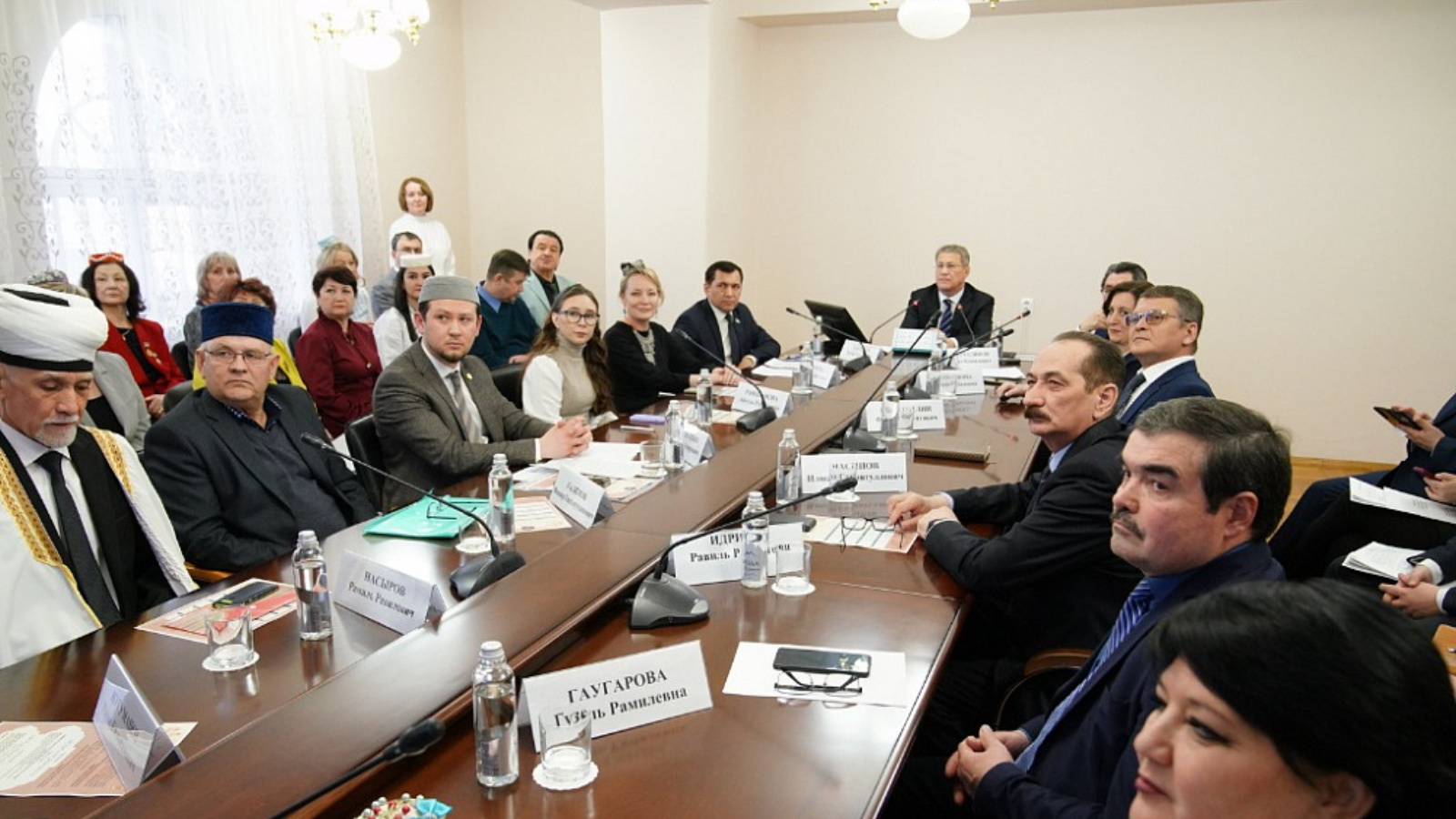 Открывая встречу, Глава Башкортостана отметил, что в республике создали все условия для сохранения и развития национальных языков и культур: «Многолетняя политика по сохранению и развитию национальных языков и культур, которая десятилетиями реализуется в Башкортостане, даёт очень хорошие результаты. Например, татарский язык в том или ином виде у нас изучают порядка 45 тысяч детей в 527 школах. В Уфе долгие годы работает татарский театр «Нур», где мы с вами находимся, – один из красивейших архитектурных объектов нашей республики».