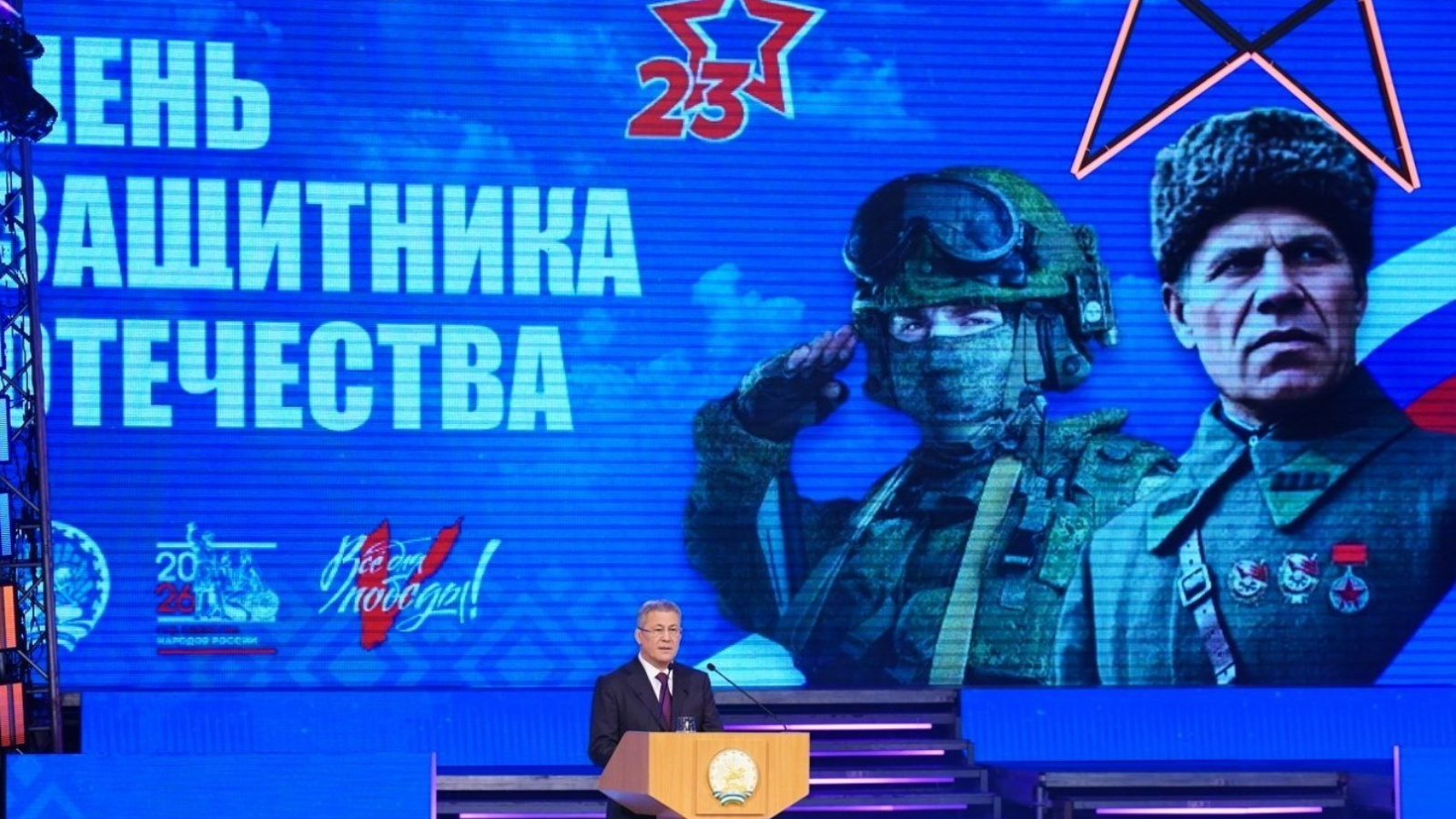 20 февраля в Государственном концертном зале «Башкортостан» состоялось торжественное собрание, посвященное Дню защитника Отечества. Мероприятие собрало тех, кого глава республики Радий Хабиров назвал гордостью региона: военнослужащих, офицеров запаса, ветеранов Вооруженных Сил и представителей силовых структур и исполнительной власти. Постоянный представитель Республики Татарстан в Республике Башкортостан Ильсур Ихсанов также был в числе приглашенных гостей.